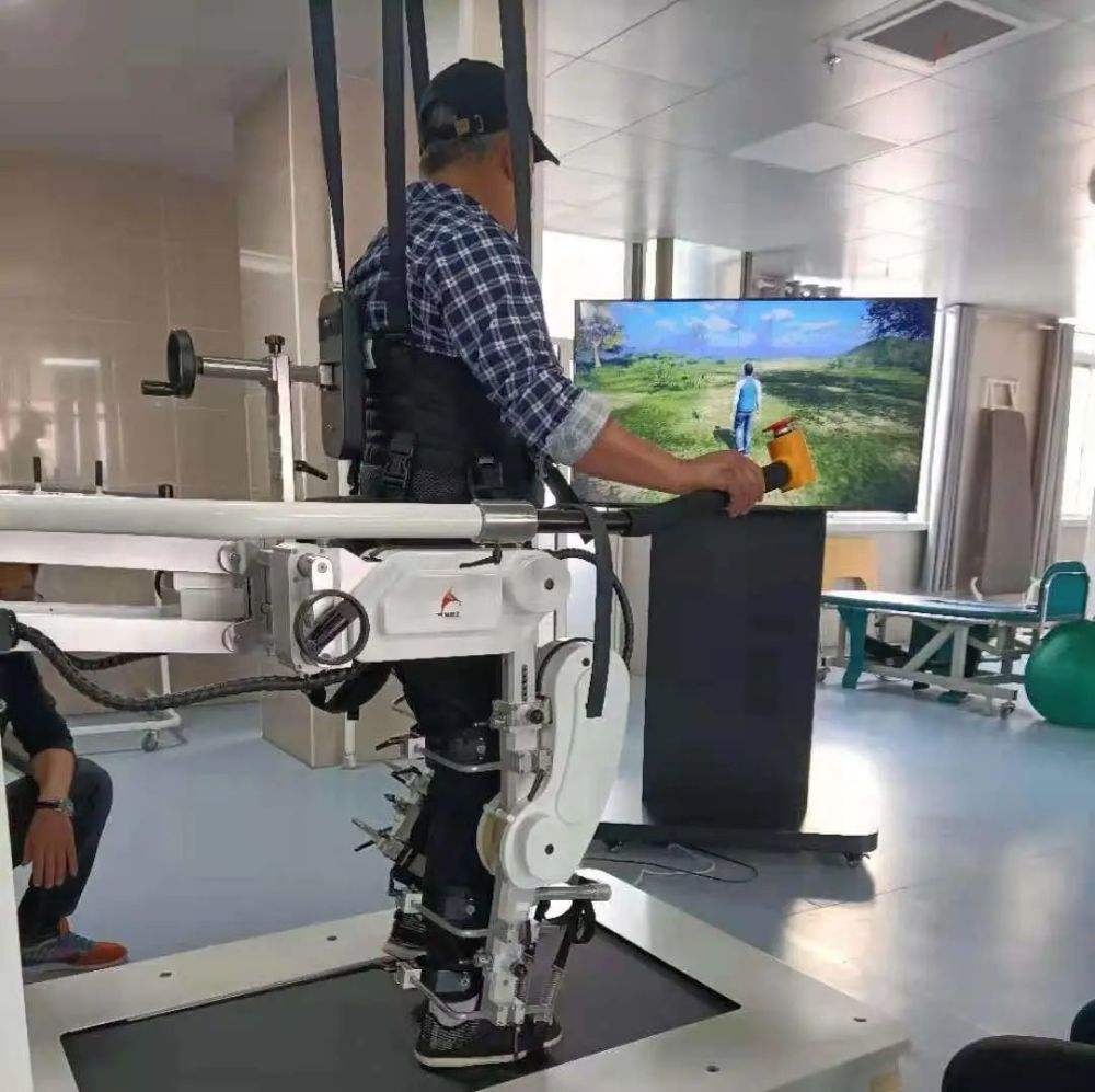 患者穿上精密的“机械腿”,就可以让患者悬浮在机器框架下进行“太空漫步”,这让很多无法自主站立的患者获得了来自机器的帮助。这种“机械腿”可以让康复运动规范而轻松,效果稳定。