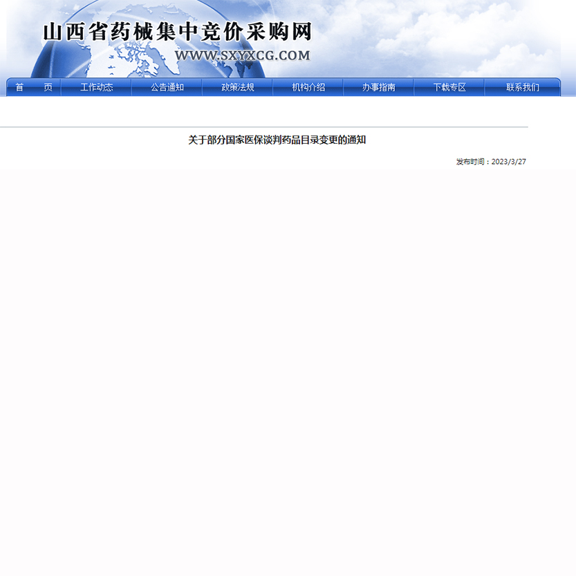 根据《关于做好2022年医保药品目录竞价品种挂网价格管理的通知》(晋药招〔2023〕41号)要求,现将相关工作通知如下: