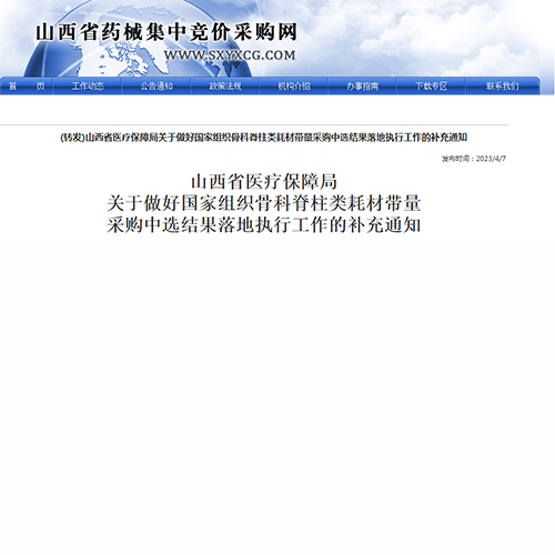 根据国家组织高值医用耗材联合采购办公室印发的《关于做好国家组织骨科脊柱类耗材集中带量采购结果执行工作的函》及国家骨科脊柱类耗材集采相关会议精神,结合我省实际,现就做好国家组织骨科脊柱类耗材带量采购中选结果落地执行工作补充通知如下: