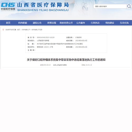 关于做好口腔种植体系统集中带量采购中选结果落地执行工作的通知